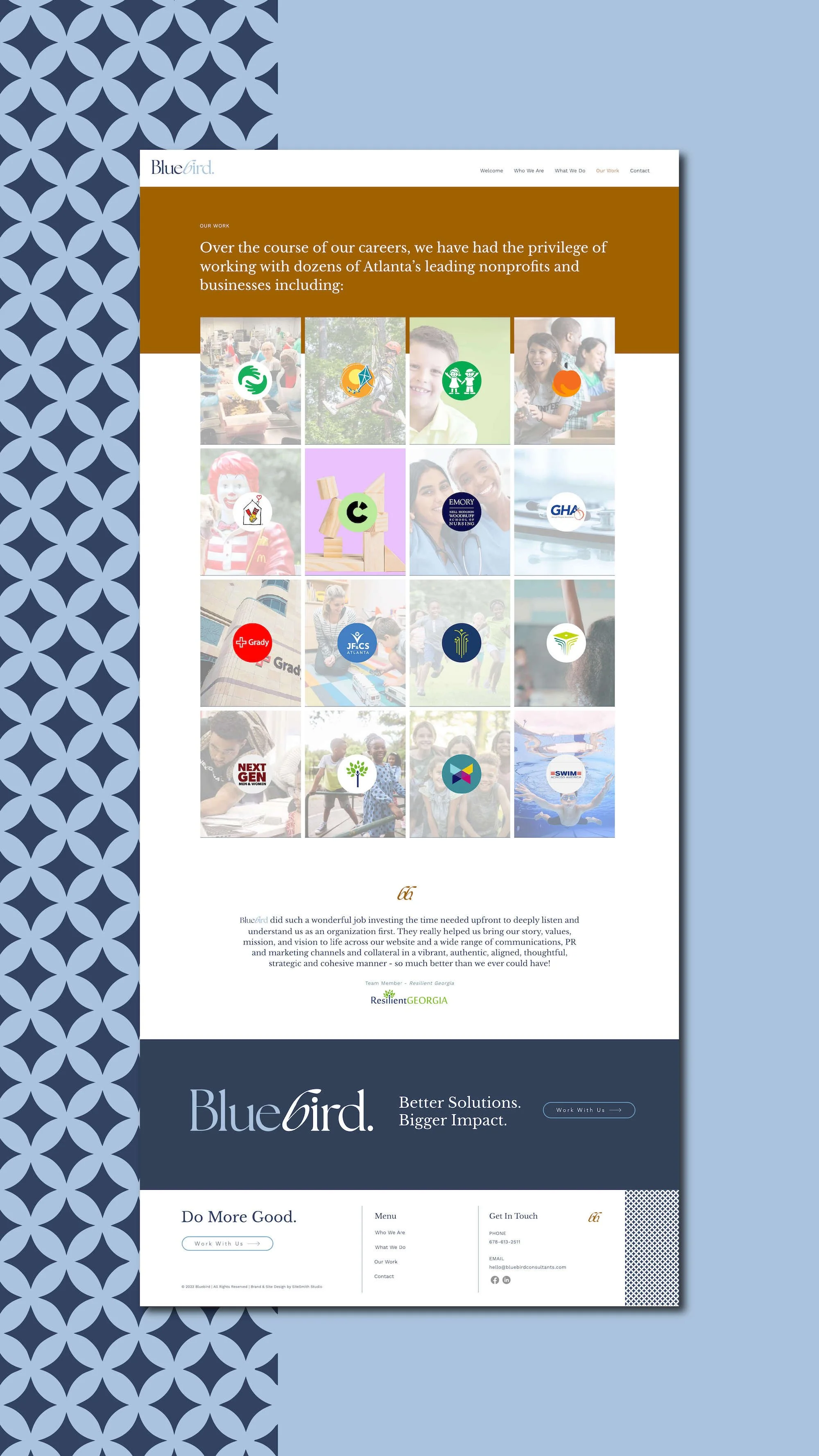 Bluebird partners with non profits offering strategic communications, marketing and partnerships that inspire people to take action. We built them a brochure site with a fresh brand on wix.