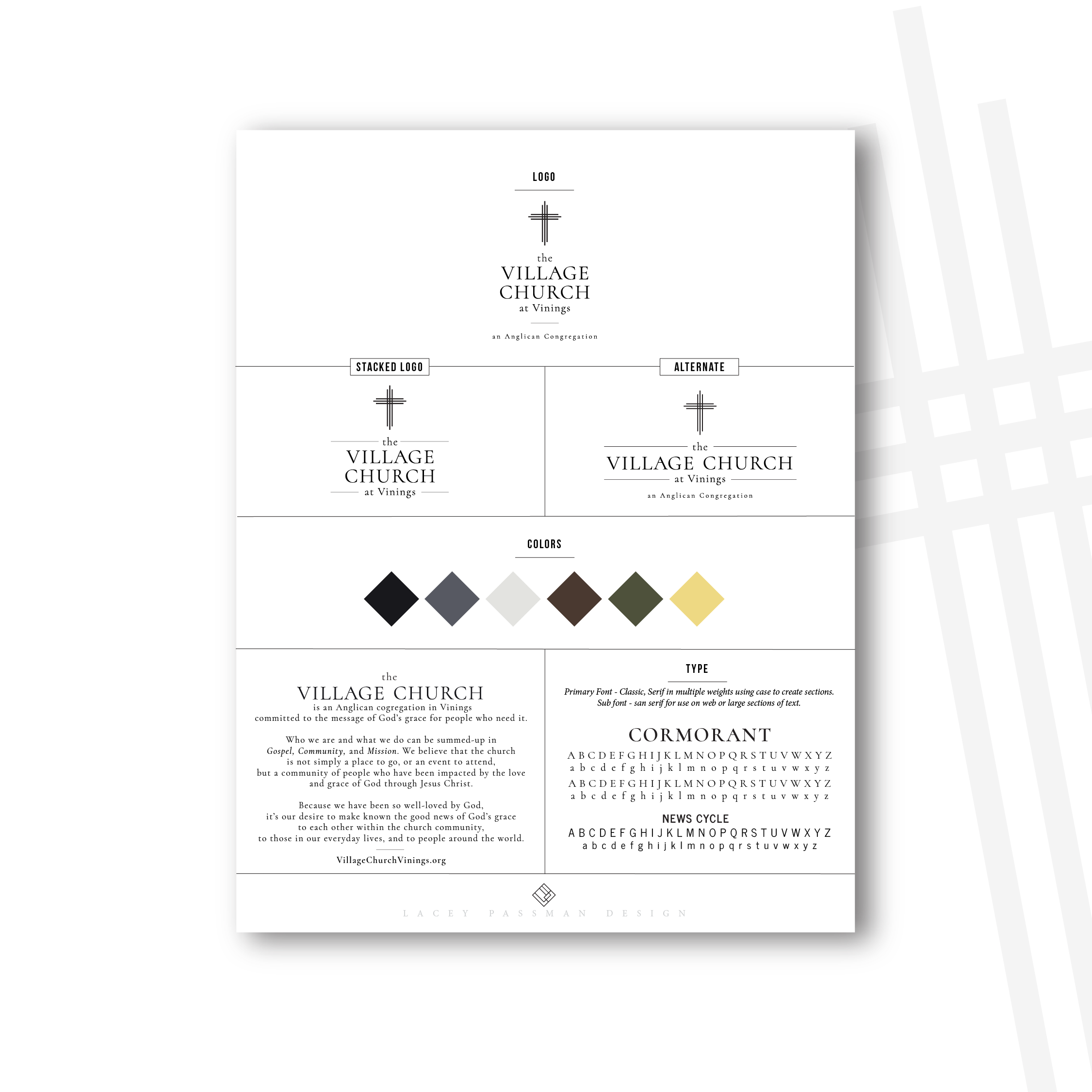 The Village Church at Vinings is an Atlanta based Anglican Congregation who had outgrown their branding. As they prepared to move into their first permanent building, they wanted a new look to better express the values they strive to live out. Their unique vision is to hold onto the ancient past while looking toward the redemptive future made possible in Jesus.
